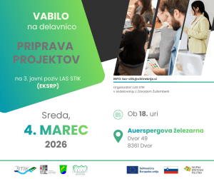 Za pripravo projektov bodo v štirih občinah območja LAS STIK organizirane delavnice, ki jih bo Center za izobraževanje in kulturo Trebnje (vodilni partner LAS STIK) izvedel prvi teden v marcu. Na njih bodo predstavili podrobnejše informacije o pogojih prijave, upravičenih stroških in pripravi projektnega predloga.